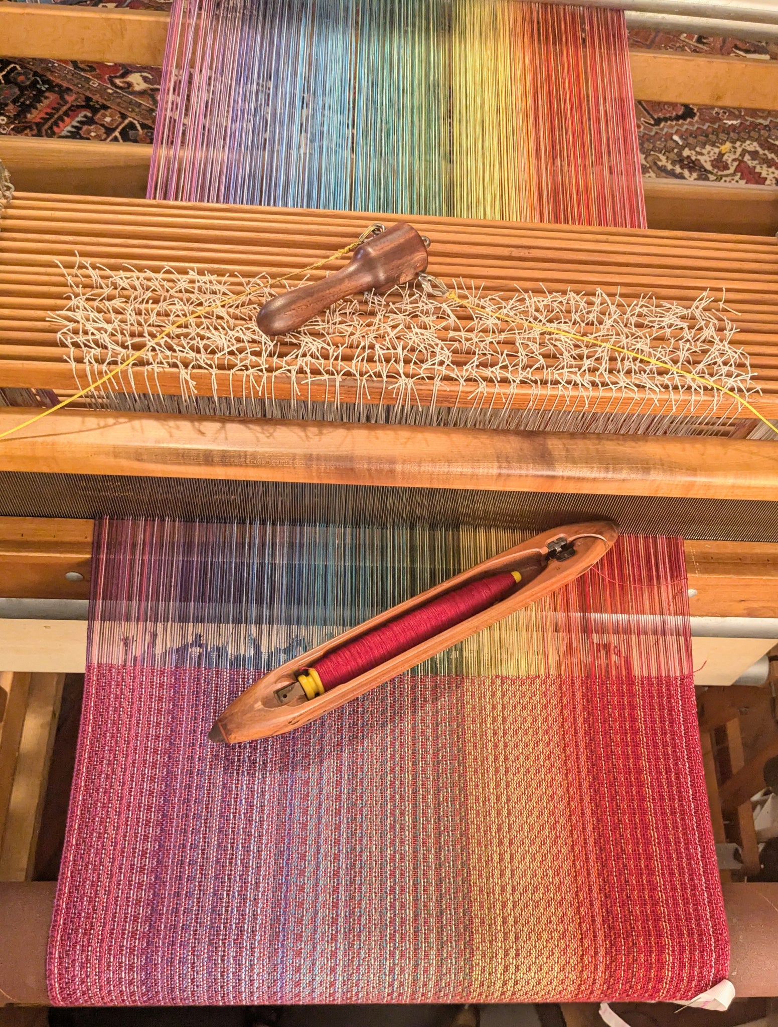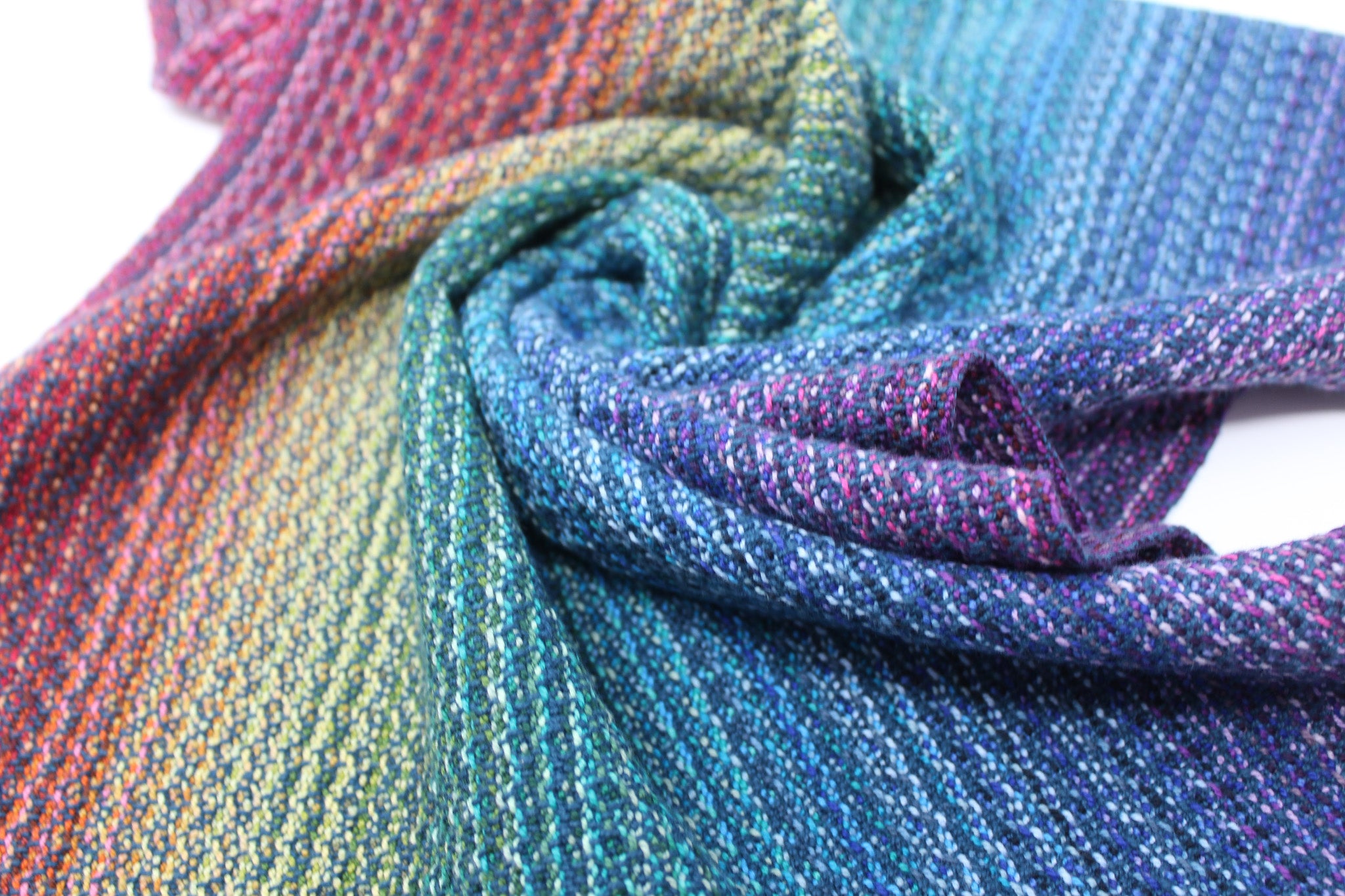 This item was handwoven by me on a floor loom, mechanically identical to ones used in the 1800s. The art of weaving is considered one of the oldest technologies in the world, and the fundamentals have changed very little in that time. Each item is constructed entirely by me, and begins its journey as loose thread eventually transformed into whole cloth. Every strand of yarn is carefully threaded into the loom, and every inch of fabric is created by building one thread on the next, interweaving them to create intricate patterns. I love weaving precisely because of how tactile it is, and how much time I get to spend touching the yarn and enjoying the colors. Because of this, every textile I weave is a pleasure to touch and look at, and is a unique creation that represents hours of a labor of love, years of study and practice, and centuries of culture and technology.